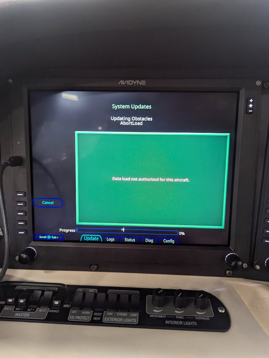 Home > Avidyne Vantage Pilot Support > Vantage12 Data Load Not Authorized